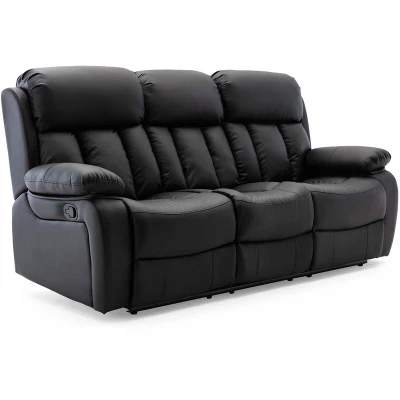 General description The super-comfy Chester Manual Recliner Sofa is designed for safety and comfort, featuring a high back for extra support. Upholstered in Bond Grade leather, it includes deeply padded, soft foam seats and armrests. The sofa is part of the Premier collection and offers full chaise seating, making it perfect for family snuggling. Available in Black and Brown. Technical specifications Item Colour: Black Material: Leather Upholstery Fabric: Bonded Leather Dimensions: H: 108 cm, W: 211 cm, D: 92 cm Features: Detachable Back Rests, Manual Recliner, Sprung Seat Assembly Required: Yes Installation Assembly is required for this sofa. Usage The Chester Manual Recliner Sofa features a side Latch Recliner Mechanism. To recline, pull the latch located on the side of the sofa to release the footrest. To return to the upright position, gently push the footrest down with your legs to lock the seat back into place, allowing the sofa seat to return to its original position. Other