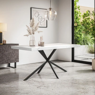 More4Homes DONNI 4 6 SEATER DINING TABLE w BLACK LEGS (White Marble Effect)