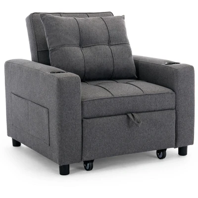 More4Homes HUDSON 1 SEATER SOFA BED LINEN FABRIC WITH CUP HOLDERS GREY