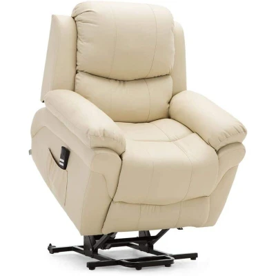 More4Homes MADISON DUAL MOTOR ELECTRIC RISE RECLINER BONDED LEATHER ARMCHAIR LIFT RISER CHAIR (Cream)