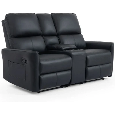 More4Homes MADRID MANUAL RECLINER AIR LEATHER SOFA (Black, 2 Seater W Console)