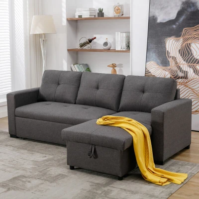 More4homes newport fabric corner chaise 3 seater sofa bed with storage left or right side Grey