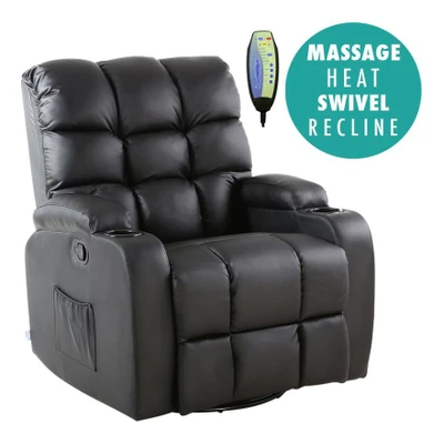 More4Homes REGAL 10 IN 1 RECLINER CHAIR ROCKING MASSAGE SWIVEL HEATED GAMING BONDED LEATHER ARMCHAIR (Black)