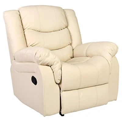 More4Homes SEATTLE BONDED LEATHER RECLINER ARMCHAIR SOFA HOME LOUNGE CHAIR RECLINING GAMING (Cream)