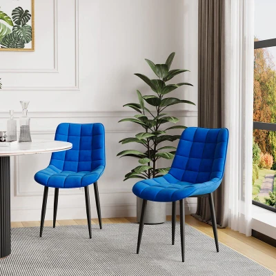 More4Homes SET OF 2 NOVA MODERN VELVET DINING CHAIR PADDED SEAT METAL LEGS KITCHEN (Blue)