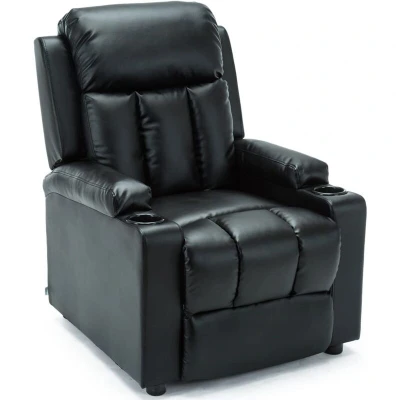 More4Homes STUDIO RECLINER w DRINK HOLDERS ARMCHAIR SOFA BONDED LEATHER CHAIR RECLINING CINEMA (Black)