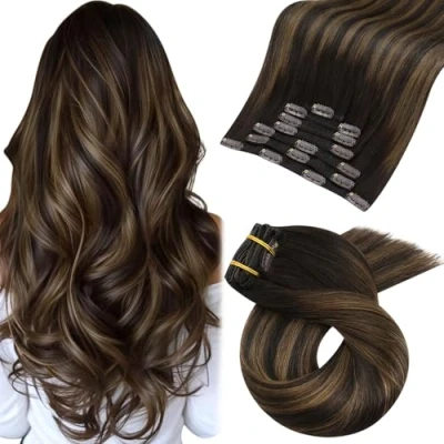 Moresoo Hair Extensions Clip in Human 20 Inch Balayage Double Weft Brown with Medium 100G/7PCS