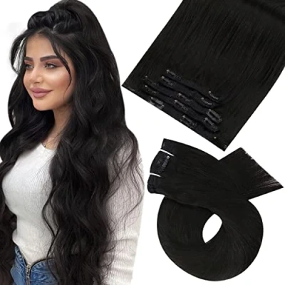 Moresoo Hair Extensions Clip in Human Black 12 Inch Off Real 5 Pieces/70g #1B