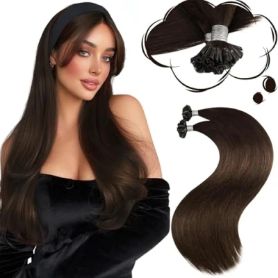 Moresoo U Tip Hair Extensions Real Human Dark Brown 16 Inch Hot Fusion Pre Bonded Remy Straight for Thin Adding Volume Natural Looking 1g/s 50g/Pack #4