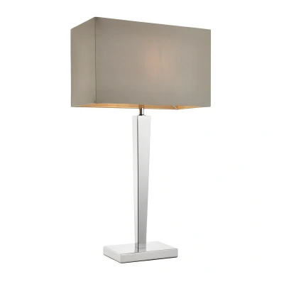 Moreto 1 Light Table Lamp Chrome with Grey Silk Effect Shade, B22