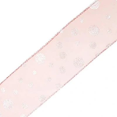 Holiday glitter silver dots on a read sheer background 2-1/2" x 50 yd in Red/Silver Glittered circles add splashes of color Wired edge is perfect for bows, curls, crafts and floral projects