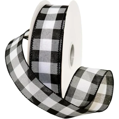 AmazonBold check plaid design 100% Polyester 1.5 inch by 10 yards in color Black and white Large gingham pattern with broad weave Formal black and white pattern for any occasion