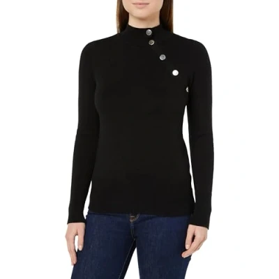 Morgan Long Sleeve Sweater with Decorative Buttons, Black, S
