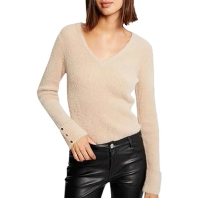 Long-sleeved fluffy knit jumper Regular fit V-neck Long-sleeved