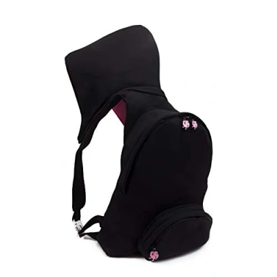 Morikukko Unisex Adult Hooded Backpack Black Neon Orange (Black Orange)