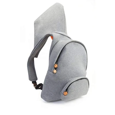 Morikukko Unisex Adult Hooded Backpack Grey Neon Orange (Grey Orange)