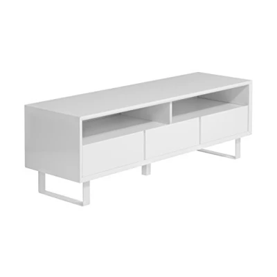 ManoManoGeneral description The Premier Housewares Moritz White High Gloss Media Cabinet is a stylish and functional addition to any living space. It features a sleek white high gloss finish that enhances its modern aesthetic. Technical specifications Two open shelves for AV units and games consoles Three deep drawers with angled tops for easy opening