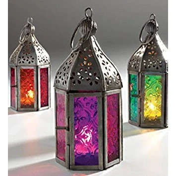 Moroccan and Indian Mini Frosted Glass Lantern Purple