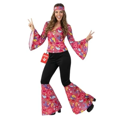 Our funky hippie costume includes a paisley print top, a matching headband and flared trousers Available in sizes Small (8-10), Medium (12-14) , Large (16-18), X-Large (20-22), XX-Large (24-26). Please refer to size chart image for further size details High quality durable material including a 70's style collar top and high-waisted disco trousers. Comfortable for a variety of body types Founded in 2009 by 3 friends with a passion for costumes, we now have 100's of designs all manufactured to high standards of quality, fit and design. We have offices in the US, UK and Europe 70s Fancy Dress for Women, including Disco and Hippie Costumes. Perfect for 60s themed parties, these retro outfits are ideal for adults seeking stylish and fun attire. Shop now for the ultimate 70s Disco and Hippie Fancy Dress options! This costume provides all-day comfort: it’s made from lightweight, stretchy, breathable materials making it easy to put on, move around in and take off. Reinforced stitching ensures durability for multiple indoor and outdoor wears. Hand wash only., Manufacturer: Morph