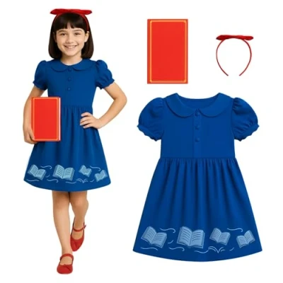 Complete costume set: Includes a classic blue school dress with puffed sleeves, a red bow headband, and a faux book prop. This 3-piece outfit provides everything needed for an instant transformation into the smartest girl in class, perfect for world book day costumes for girls! Our book lover costume is available in Small (4-6 Years), Medium (7-9 Years) and Large (10-12 Years). Please see the Morph size guide for further information Designed for comfort: Crafted from breathable lightweight fabric, this costume ensures your child stays comfortable during all-day school events, parades, or parties Authentic storybook details: Features charming book illustrations printed along the skirt hem and a bold collar that captures the iconic look of a beloved literary heroine Versatile for any ocassion: Perfect for World Book Day costumes for kids, Halloween, school plays, or themed birthday parties. This durable outfit encourages imaginative play and can be worn repeatedly for various dress-up events throughout the year This costume provides all-day comfort: it’s made from lightweight, stretchy, breathable materials making it easy to put on, move around in and take off, allowing for easy bathroom breaks. Perfect for active play, trick-or-treating, and wearing indoors or outdoors in any weather. Hand wash only., Manufacturer: Morph