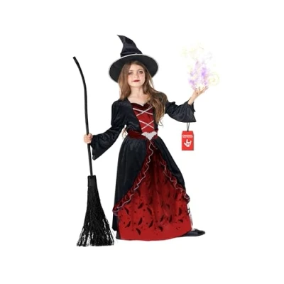Complete witch costume set: Includes a magical red witch dress with soft crushed velour, ombre printed bodice, layered skirt, and a bat-detailed hat—everything your child needs for a spellbinding transformation. Easy sizing for every little witch: Available in toddler (3–4 years), small, medium, large, and extra-large. Check the size guide for the perfect fit and let your child enjoy their kids witch costume with confidence. Sparkle and standout style: This girls red witch costume features silver trim and bat accents for an enchanting look, making it ideal for Halloween parties, school dress-up days, or magical play at home. Whimsical comfort and quality: The lightweight, stretchy materials and soft, layered skirt mean your little one can cast spells, twirl, and play in comfort. Perfect for parents looking for a witch costume for girls that delivers both style and wearability. Designed by Morph for durability: Crafted by a trusted brand, this red witch costume kids love is made with reinforced stitching and high-quality fabrics to last through multiple wears and endless adventures. All-day comfort for active kids: This costume provides all-day comfort: it’s made from lightweight, stretchy, breathable materials making it easy to put on, move around in and take off, allowing for easy bathroom breaks. Perfect for active play, trick-or-treating, and wearing indoors or outdoors in any weather. Hand wash only., Manufacturer: Morph