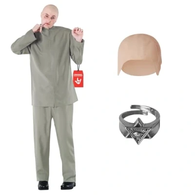 Mastermind Grey Villain Costume with Baldcap – Become the villain of your dreams with this full grey suit, complete with a high-collared jacket, sleek pants, and a one-size-fits-all baldcap. The adjustable pinky ring adds the perfect finishing touch for any mastermind. Sizes for Every Body Type – Available in 5 sizes (M, L, XL, 2XL, 3XL), this costume is designed to fit a range of body types. Make sure to check the size guide in the images to select the right fit for comfort and style. Designed for All-Day Comfort – This costume is made from comfortable, breathable fabric and features loose-fitting pants with an elastic waist for ease of movement. Whether you’re attending a 60s party, a movie-themed event, or just dressing up for Halloween, this costume ensures you can move freely without compromising on style. Crafted with Expertise and Passion – Founded in 2009, Morph is known for offering top-notch, high-quality costumes. Our designs are produced to the highest standards of craftsmanship and fit, and we proudly operate from offices in the US, UK, and Europe. Perfect for 60s and Movie-Themed Events – Whether it’s Halloween, a 60s retro party, or a film-themed celebration, this grey villain costume is the ideal choice. Look stylish and sinister while embodying the spirit of your favorite villain from the silver screen. Durability Meets Comfort – Made with lightweight, stretchy materials, this costume is easy to wear, move around in, and take off. Reinforced stitching ensures long-lasting durability, making it perfect for multiple occasions. Hand wash only to keep it looking pristine., Manufacturer: Morph