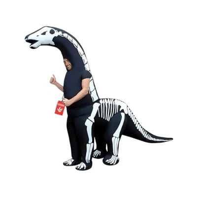 OFFICAL MORPHCOSTUMES INFLATABLE COSTUME: This amazing Skeleton Diplodocus Inflatable Dinosaur costume is the hottest costume trend of the year and is a must-have for those who love to have fun and stand out from the crowd! With its giant size, this incredible diplodocus suit is sure to be a roaring success! One size fits most adults; Height 5’4-6’2 (165cm-188cm) PERFECT FOR PARTIES: This amazing Skeleton Diplodocus Inflatable Dinosaur costume is a game changer for events; you’ll be the life of the party! It’s quick and easy to put on too, simply step into the costume, do the zip up, switch on the fan, wait a minute and you're ready to go! HIGH QUALITY INFLATABLE DINOSAUR COSTUME: Our high-quality material is secured with reinforced stitching at stress points, to make sure that this Blow Up Costume is resilient and durable. Our elasticated openings ensure that the costume stays inflated and no air escapes! The fan and lights have an approximate run time of 4 hours (tested using good quality batteries). MORPH COSTUMES: Brought to you by one of the world’s leading costume brands, we specialise in innovative and eye-catching designs for every occasion! With 1.3 million Facebook followers and over 2 million costumes sold, you can trust us to deliver the perfect costume for your big event!, Manufacturer: MorphCostumes