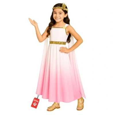 Transform into a Mythological Icon: This stunning girls Greek Goddess costume features a floor-length white dress with a beautiful pink ombre effect,also included is gold look headband.Perfect for channeling Athena or Aphrodite at any costume party. Available in 3 Sizes: Offered in Small (4-6 Years), Medium (7-9 Years)and Large (10-12 Years) to fit girls of various ages; please refer to the Morph size chart to ensure the right fit. Complete Ancient Look: Includes a regal looking gold leaf headband and a dress adorned with gold trim beltand an attached sheer drape, providing a high-quality, authentic Roman Empress aesthetic right out of the package. Versatile for Every Occasion: Ideal for school history projects, World Book Day Costumes For Girls, Halloween and more! Trusted Morph Quality: Designed by the experts behind the Morphsuit, featuring quality stitching and durable prints that survive legendary adventures and multiple wears. This costume provides all-day comfort: it’s made from lightweight, stretchy, breathable materials making it easy to put on, move around in and take off, allowing for easy bathroom breaks. Perfect for active play, trick-or-treating, and wearing indoors or outdoors in any weather. Hand wash only., Manufacturer: Morph