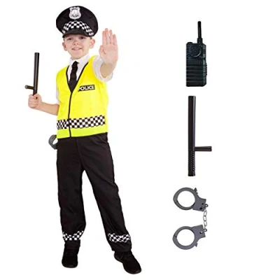 Police outfit kids includes shirt with attached tie and high vis police vest kids, trousers with checkered cuffs, kids police hat and radio, truncheon and handcuffs This police set for kids is easy to wear, breathable, and built for comfort. Costume comes with great police accessories for kids, including kids' handcuffs This policeman costume for children is available in 2 sizes Small & Medium. Please refer to the size chart image for further size details Founded in 2009 by 3 friends with a passion for costumes, we now have 100's of designs all manufactured to high standards of fit and design. We have offices in the US, UK and Europe Morph Police Costume for Kids - Fun Police Officer Dress-Up for Boys - Kids Police Costume. Perfect Halloween costume featuring a police theme. Ideal for kids who love role play and adventure. Great for parties and trick-or-treating! This costume provides all-day comfort: it’s made from lightweight materials making it easy to put on, move around in and take off, allowing for easy bathroom breaks. Perfect for active play, trick-or-treating, and wearing indoors or outdoors in any weather. Hand wash only., Manufacturer: MorphCostumes