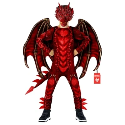 Dragon costume for kids designed as a fantasy creature outfit and mythical dragon suit, worn as dress-up apparel for children who love imaginative monsters and adventure play Created for immersive costume wear with a digitally printed scale bodysuit, lightweight breathable fabric, and flexible seams capable of comfortable movement and all-day play Commonly worn by kids and young fantasy fans as a dragon costume, this creature outfit represents a fire-breathing monster character used by imaginative role players Perfect for Halloween, costume parties, and school dress-up events, this dragon outfit helps recreate fantasy worlds at home, parties, and indoor play locations Worn on the torso, arms, and legs with realistic wing attachments, a hand-painted dragon mask, and a detachable dragon tail, pairing well with sneakers or boots Ideal for children interested in dragons, fantasy creatures, and mythical stories, parents choose this kids dragon costume to spark confidence, creativity, and dramatic play, Manufacturer: Morph