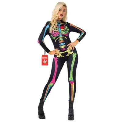 Our woman's skeleton costume includes: One fitted black bodysuit with bold skeleton bones and colorful detailing Four Sizes Available: Available in sizes Small 8-10, Medium 12-14, Large 16-18, and X-Large 20-22. Please refer to the size guide for more information and find your perfect fit. If between sizes, size up Show off your spooky side with this women's skeleton bodysuit made with high-quality stretch material, this costume is perfect for any Halloween themed event or party Founded in 2009 by 3 friends with a passion for costumes, we now have 100's of designs all manufactured to high standards of quality, fit and design. We have offices in the US, UK and Europe Perfect for Halloween: skeleton costume women jumpsuit, skeleton costume adult women, halloween costumes for women skeleton, skeleton womens costume, womens halloween costume skeleton, Manufacturer: Morph