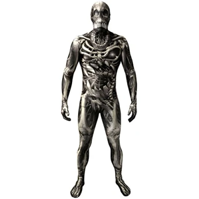 OFFICIAL MORPH MONSTER COSTUME: The Skull and Bones Morphsuit, taking the skeleton costume to a whole new level. Size based on height: Medium 4’7-5’2 (138cm-158cm); Large 5’3-5’9 (159cm-175cm); X-Large 5’10-6’1 (176cm-185cm); XX-Large 6’2-6’9 (186cm-206cm) PERFECT FOR SCARING: The Skull & Bones costume is perfect for Halloween and terrifying people, even if they've never heard of him, they will still be creeped out HIGH QUALITY SKULL AND BONES COSTUME: Our high quality material means a 4-way stretch, with double zips and re-enforced stitching at stress points to make sure this Skull & Bones Morphsuit lasts more than one wear. Wash in cold water, air dry and you're good to go again MORPH COSTUMES: From Morphsuits, the world's most popular costume brand which you can see through, breathe through and drink through. 1.3 million Facebook followers cannot be wrong; over 2 million costumes sold.