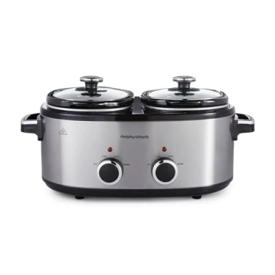 Morphy Richards 3.8L DuoServe Double Pot Slow Cooker, Ceramic Pots, 4 Preset Functions, Independent Temperature Controls, Tempered Glass Lid, Easy Clean, Brushed Stainless Steel, 462000