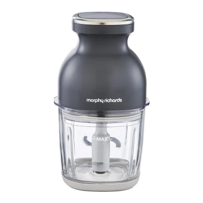 The Morphy Richards 3-in-1 mini food chopper is just the job for smaller kitchens. Powered by a 200 W motor, it makes light work of chopping, grating and whisking - perfect for onions, herbs, nuts, or even whipping cream. With a one-touch button, you decide how smooth or chunky you want it. And thanks to the rechargeable battery, you can use it anywhere without being tied to a plug. Good to know - The clear bowl lets you keep an eye on your ingredients as you chop - The low battery indicator tells you when it's time to recharge - It comes with three interchangeable attachments to chop, whisk or grate - Its compact design won't hog your worktop and slips away neatly when you're done