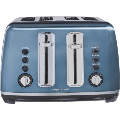 Morphy Richards Accents Toaster 4 Slice Toaster, Variable Browning, Wide Slots, High Lift, Illuminated Buttons, Removable Crumb Tray, Cancel, Reheat, Defrost, Integrated Cord Storage, Blue, 242049