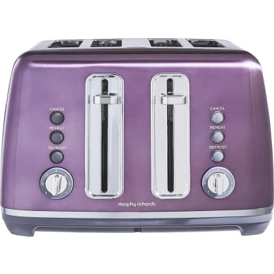 Morphy Richards Accents Toaster 4 Slice Toaster, Variable Browning, Wide Slots, High Lift, Illuminated Buttons, Removable Crumb Tray, Cancel, Reheat, Defrost, Integrated Cord Storage, Purple, 242050