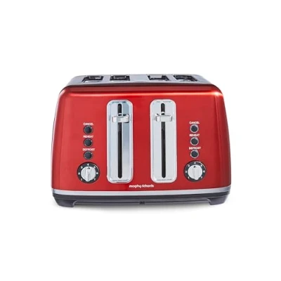 Morphy Richards Accents Toaster 4 Slice Toaster, Variable Browning, Wide Slots, High Lift, Illuminated Buttons, Removable Crumb Tray, Cancel, Reheat, Defrost, Integrated Cord Storage, Red, 242048