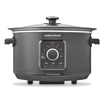 Amazon3.5L capacity: With its generous 3.5 litre capacity, the Easy Time slow cooker is perfect for family cooking, dishing up to 4 main courses The delicious meals you can create just got a whole lot simpler and energy efficient! Complete Control: Unique dial to take all the guesswork out of cooking Simply select when you want your meal to be ready, and Easy Time will choose the right heat for you Manually override or amend the heat settings (low, medium, or high) with a touch of a button Sear on the Stove: The removable pot is hob proof, so you only have to use one pot from start to finish - sear and sauté any ingredients first for increased flavour, and then transfer to the slow cooker Keep Warm: Don't stress next time you're running late, easy time has a keep warm mode that will have your dinner perfect for up to two hours after the programme finishes Easy Clean Up: With a removable, shatterproof aluminium pot, cleaning up could not be simpler The non-stick pan and lid are also dishwasher safe, Weight: 4.8060773116 Pounds, Manufacturer: Morphy Richards