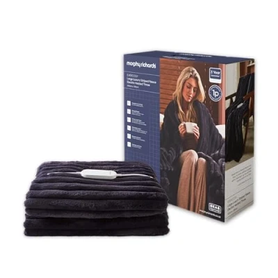Currys- This Morphy Richards heated throw has 9 heat settings so you can get nice and cosy- With its fast heat up you can get warm quickly- It's got a detachable controller so you can adjust the heat without getting up- Stay warm and safe with the overheat protection built right in- You can choose between a 1 to 9 hour auto shut off timer- Cleaning it is super easy - just pop it in the washing machine and dry in the tumble dryer