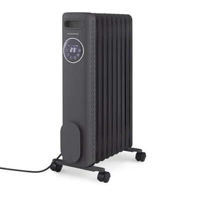 Morphy Richards HeatFlux Digital Oil Filled Radiator, Remote Control, 20m2 Coverage, LED Touch Panel, Eco Mode, Personalised Warmth, Timer, Auto Switch Off, Cord Storage, 2kw, Grey, 827752