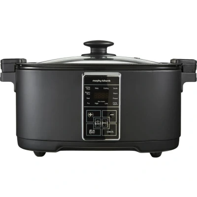 Currys- There's 10 cooking presets on this Morphy Richards multicooker, so you can make delicious meals with less fuss - Its large 6.5-litre capacity is perfect to steam, sauté, slow cook or roast chicken and veg for the whole family - Your food will stay warm even after it's finished cooking, thanks to the keep warm function - Have your meal ready just at the right time using the handy timer - Cleaning up is quick and easy, thanks to the dishwasher safe parts - Choose the setting you want on its bright LED display