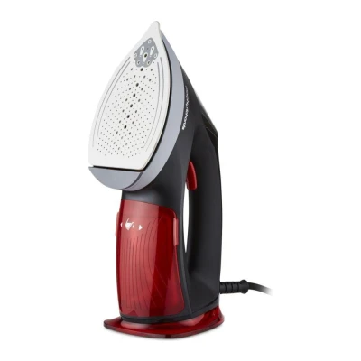 Say goodbye to stubborn creases. This Morphy Richards 2-in-1 garment steamer and iron gets the job done with a 35 g/min steam flow. Refilling is quick and easy thanks to the detachable 200 ml tank, and the water shortage indicator ensures you won't run out of steam mid-session. Plus, it's got a ceramic soleplate that glides smoothly over your fabric while being tough on wrinkles.Good to know- There are Eco and Boost modes to quickly switch from light silk blouses to crinkled cotton shirts - From delicate shirts to crinkled curtains, the 2000 W motor heats up fast and powers through tough spots with ease - No room for a board? The vertical steam mode lets you freshen up clothes straight from the hanger - The auto-shut off function kicks in if left unattended, so that's one less thing to worry about - It takes only 25 seconds to heat up, so you don't have to wait long enough to get started - LED display gives you a quick view of the current mode and temperature you're using