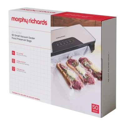 Morphy Richards Vacuum Food Sealer Bags, Small, 50 Accessory for 432040, Pre Cut Airtight Protection, LFGB Approved, 433000