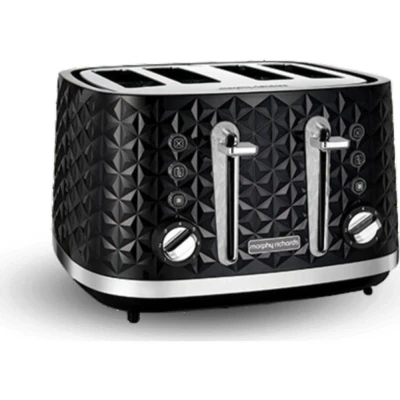 Morphy Richards Vector 4 Slice Toaster, High Gloss Geometric Design, Defrost and Reheat, Variable Width Slots, Removeable Crumb Tray, Black, 248131