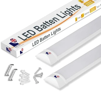 Morris 45w LED Batten Lights 5ft, 150cm, 4000k Natural White, IP20 Fluorescent Strip Light Fitting for Ceiling of Home & Office, Workshop Garage Lighting, Pack 2