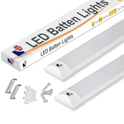 Morris 50w LED Batten Lights 6ft, 180cm, 6000k Daylight, IP20 Fluorescent Strip Light Fitting for Ceiling of Home & Office, Workshop Garage Lighting, Pack 2