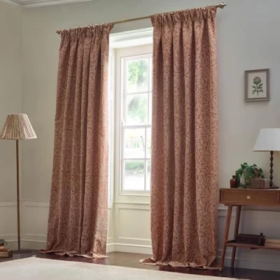 Morris&Co. Acorn Tonal Pencil Pleat Curtain Pair Lined Matt Jacquard Drapes with Botanical Floral Design (Brick 229x183cm)