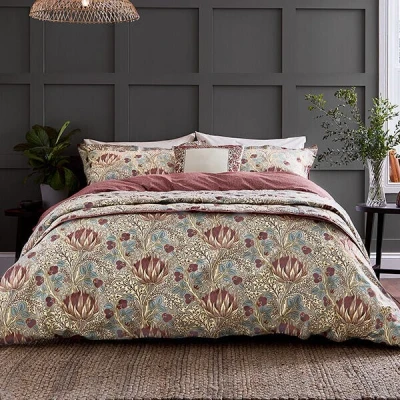 The Morris & Co Artichoke Double Cover Set in Dove Grey & Wine features large artichoke motifs on a busy background.Made from 100% cotton and machine washable for convenience and a 200 thread count.This set comes with a duvet cover and two matching oxford pillowcases. Pillowcase dimensions: 74 x 48 +5cm.Double: 200cm x 200cm.