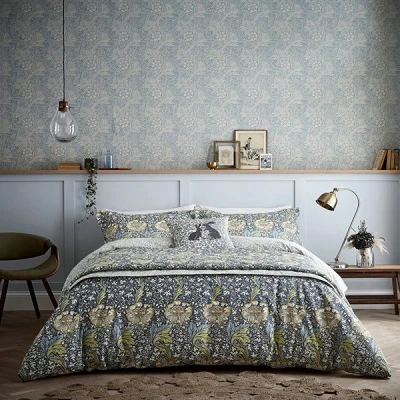 AmazonWilliam Morris Kennet Duvet Cover Set 100% Cotton Percale, 180 Thread Count Button Fastening Machine Washable at 40° C