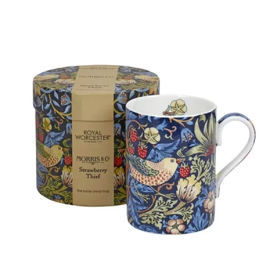 This exquisite Morris & Co Indigo / Mineral Strawberry Thief Mug , is supplied with a beautifully illustrated gift box to make it a fine gift or a treat for yourself.The mug boasts a 350ml capacity, is made from fine bone china and is dishwasher safe for easy cleaning.Microwave and freezer safe.